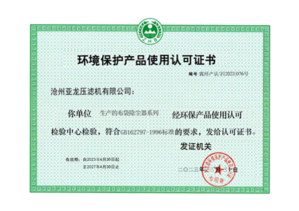 環(huán)境保護(hù)產(chǎn)品使用認(rèn)可證書-