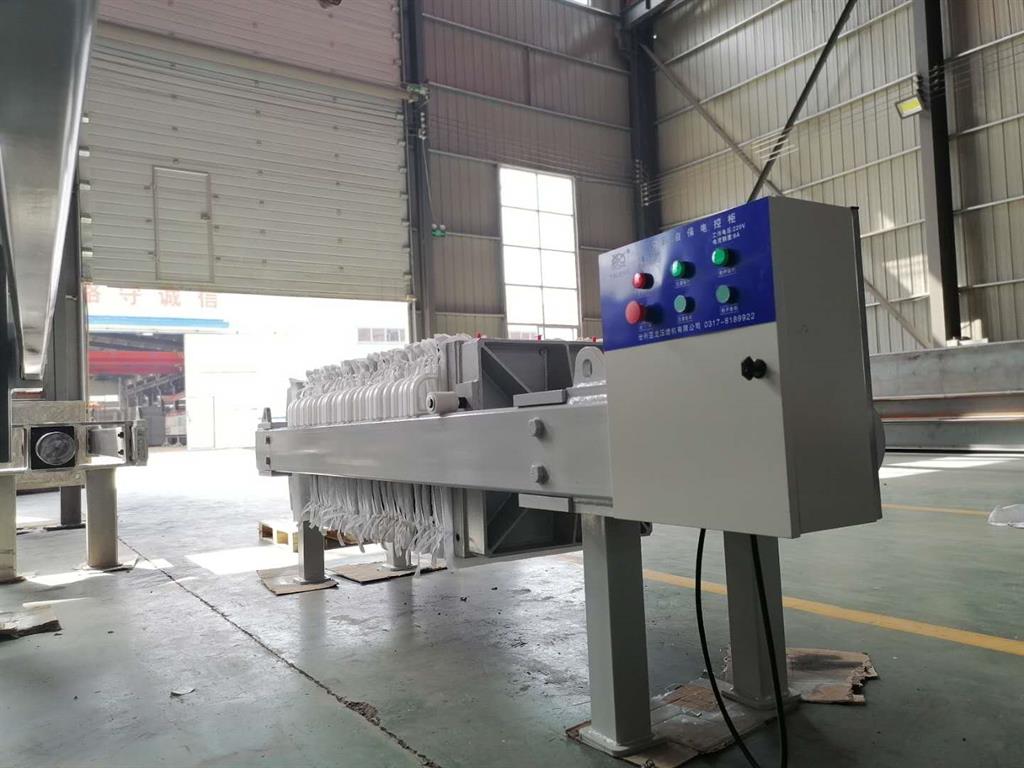安裝軌道盒托架,以及上、下軌道盒。 對于隔膜壓濾機(jī)傳動(dòng)部分的安裝,應(yīng)包括:鏈輪、鏈條、油馬達(dá)、拉鉤盒等。在安裝連接鏈條、拉鉤盒時(shí),應(yīng)使兩拉鉤盒緊靠軌道盒端部定位板,應(yīng)兩拉鉤盒同步精度<4mm。 將濾板吊裝至主梁道軌上,定位把手在同一側(cè)。再安裝濾布,上好濾布?jí)喝?縫制濾布不用壓圈)。調(diào)整軌道盒高度,濾板把手底面與上軌道盒底面距離為,從而讓其達(dá)到拉板工作穩(wěn)定可靠為準(zhǔn)。