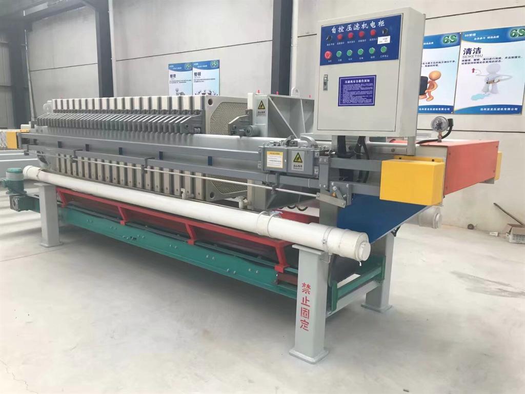 加壓過濾機(jī)是在過濾表面上施加高于大氣壓的壓力,在過濾介質(zhì)濾液出口的那一側(cè)則為常壓或者略高于常壓以形成過濾推動(dòng)力而進(jìn)行過濾的裝置。柱塞泵,隔膜泵,螺桿泵,離心泵,壓縮氣體以及來自壓力反應(yīng)器的物料都可以提供過濾壓力。水平板式壓濾機(jī)是加壓過濾機(jī)的一個(gè)類型,下面來說說水平板式壓濾機(jī)的工作原理。
