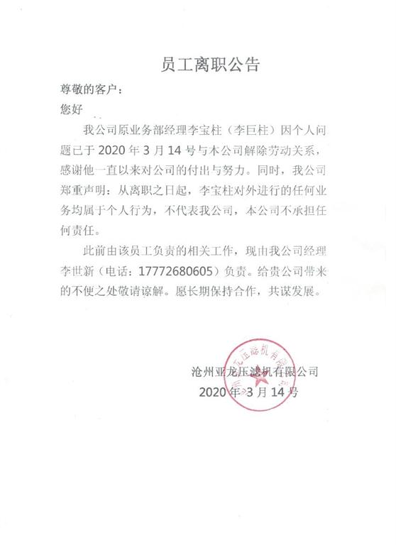 業(yè)務(wù)部經(jīng)理離職聲明